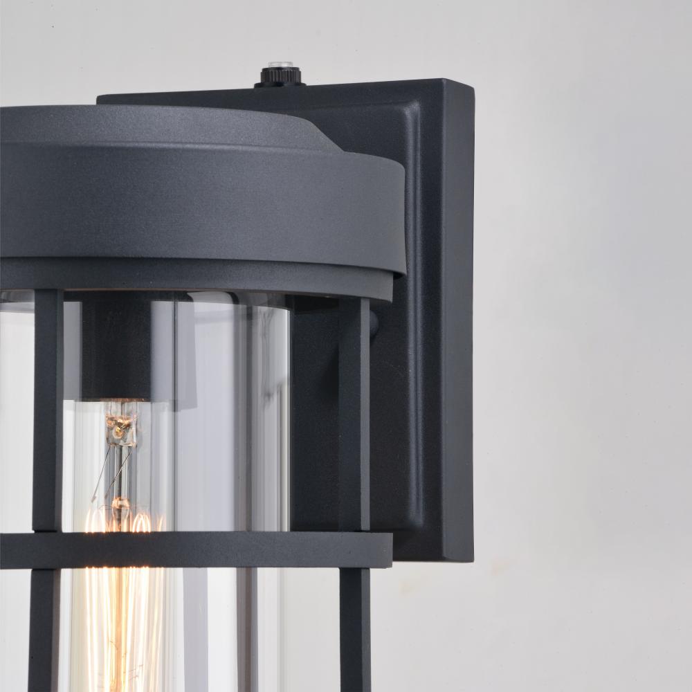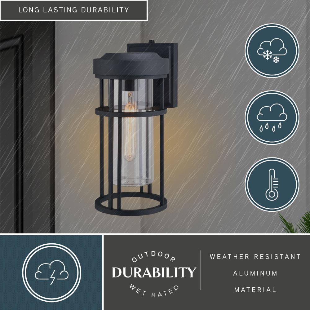 The Crestline's overall simple and minimal approach echo a sense of modernity and elegance, making it a fitting addition to your contemporary outdoor spaces. Cylinder-shaped clear glass is surrounded by a durable, corrosion-resistant aluminum frame finished in textured black to create an interesting windowpane vibe. It’s built-in dusk to dawn photocell automatically turns the light on at dusk and off at dawn, saving energy during daylight hours. This outdoor wall light is ideal for your porch, entryway, garage, or any other area of your home.