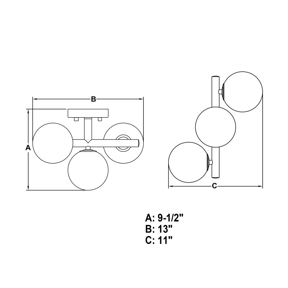 13-in W x 9.5-in H x 11-in D with 4.72-in W x 1-in H Canopy