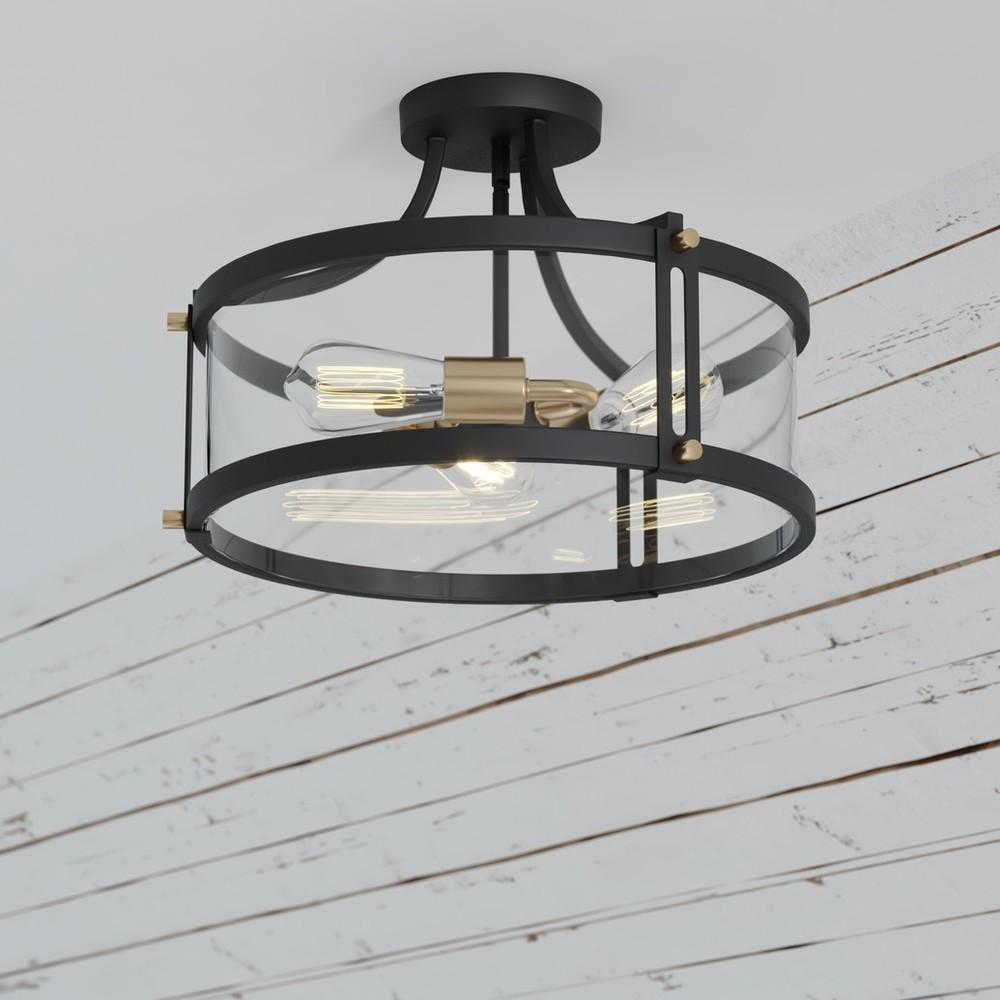 Holbrook 15.75-in. 3 Light Semi-Flush Matte Black and Satin Brass
