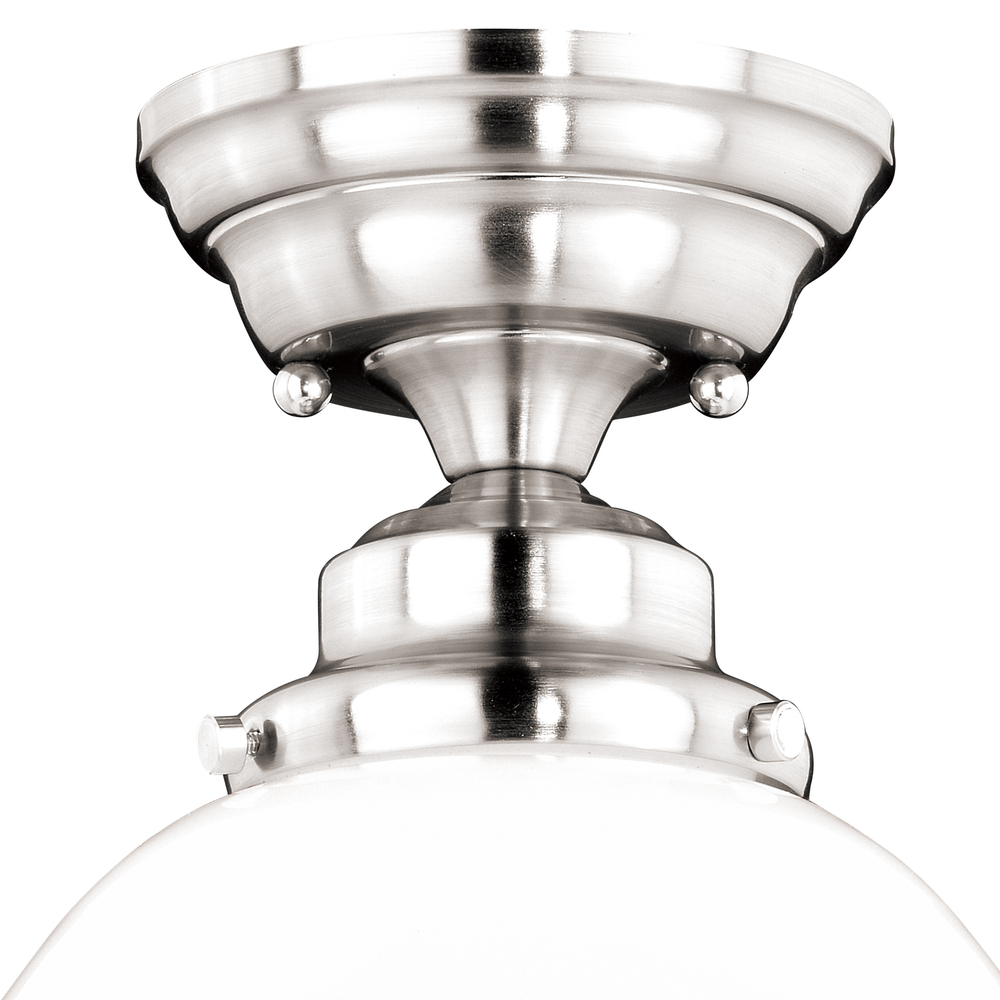 Huntley 12-in Semi Flush Ceiling Light Milk Glass Satin Nickel