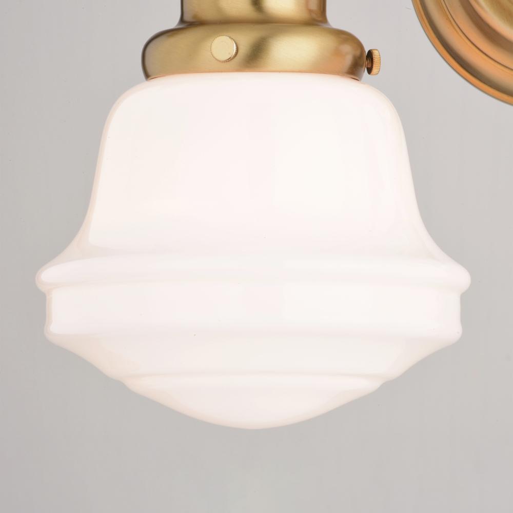 The Huntley is a timeless collection inspired by mid-century small-town aesthetics. The vintage schoolhouse white milk glass is the focal point of this design with its unique profile. Offered in multiple classic finishes and glass options, this versatile farmhouse light provides a unique accent to a variety of kitchen, dining, and bathroom settings. Coordinating pieces available to complete your look.