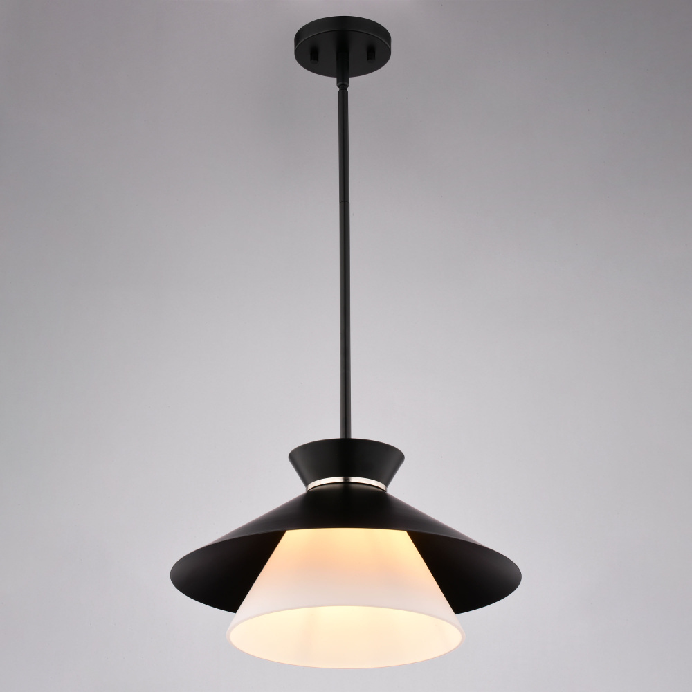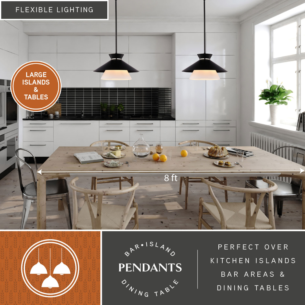 Pendant, Light, Glass, Shade, Black, White, Island, Ceiling, Wide, Fixture, Hanging, Frosted, Adjustable, Modern, Cone, Room, Matte, Table, Foyer, Dining, Height, In