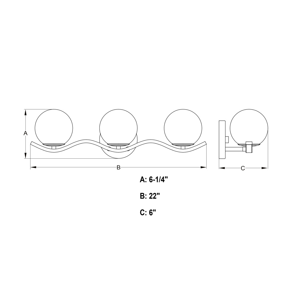 Monticello 22-in. W 3 Light Vanity Matte Black