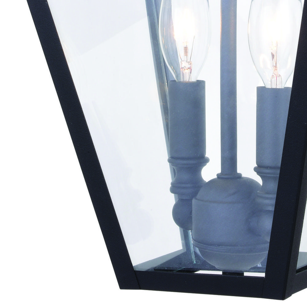 Textured black finish with clear glass provides bright illumination and a transitional feel