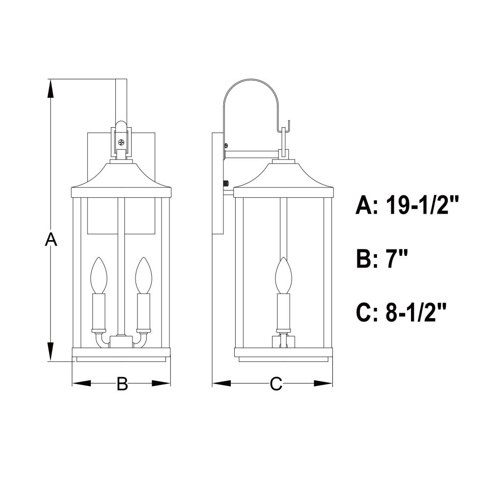 7-in W x 19.5-in H x 8.5-in D with 4.72-in W x 7.09-in H Backplate
