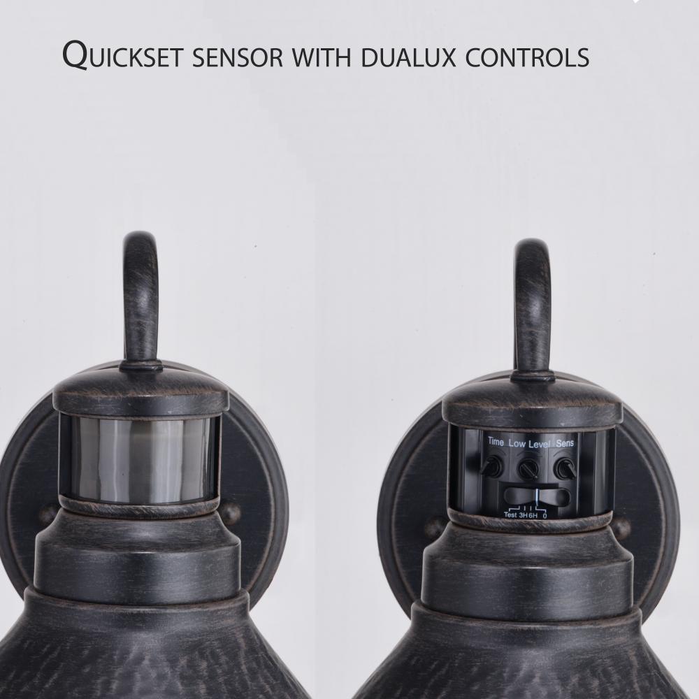 Outland Dualux 10-in. Outdoor Motion Sensor Wall Light Aged Iron and Light Gold