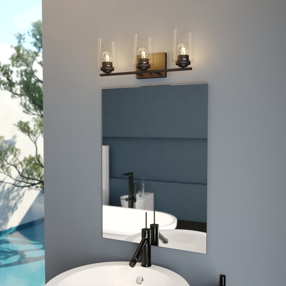 Light, Vanity, Glass, Wall, Bathroom, Sconce, Shade, LED, Bath, Black, Lighting, Clear, Fixture, Dimmable, Wide, Mount, Transitional, Matte, Steel, Mirror, Mounted, The, Room, In, Cylinder, Over