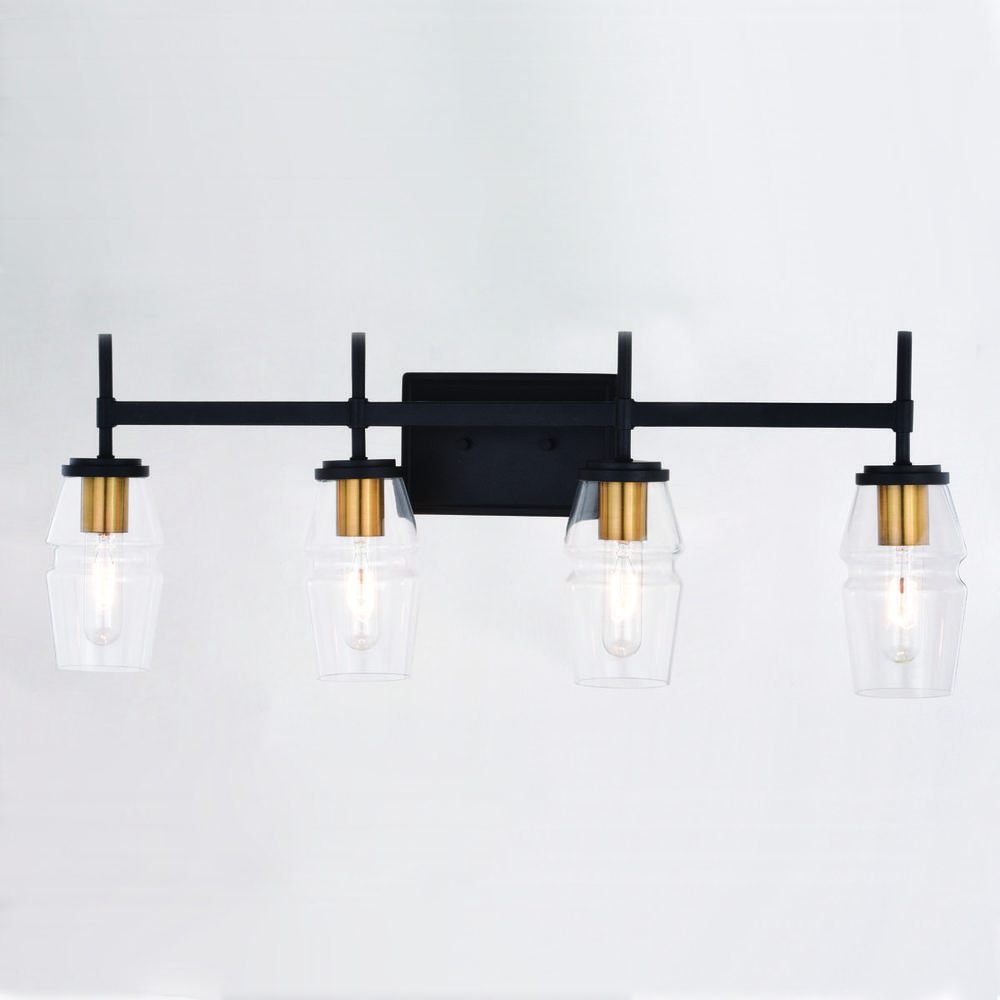 Warren 4 Light Vanity Light Matte Black and Brushed Brass