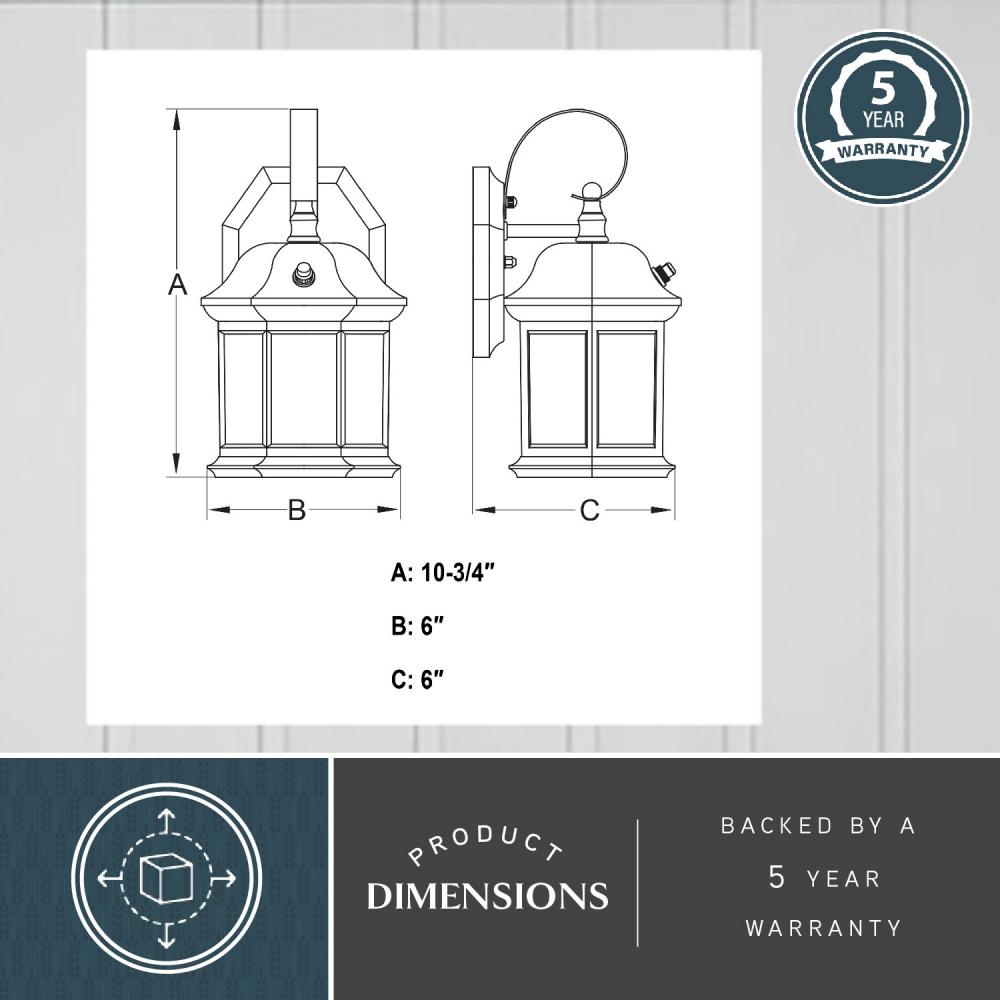 Measures 6-in W x 10.75-in H x 6-in D with a 4.72-in W x 5.51-in H x 0.89-in D backplate
