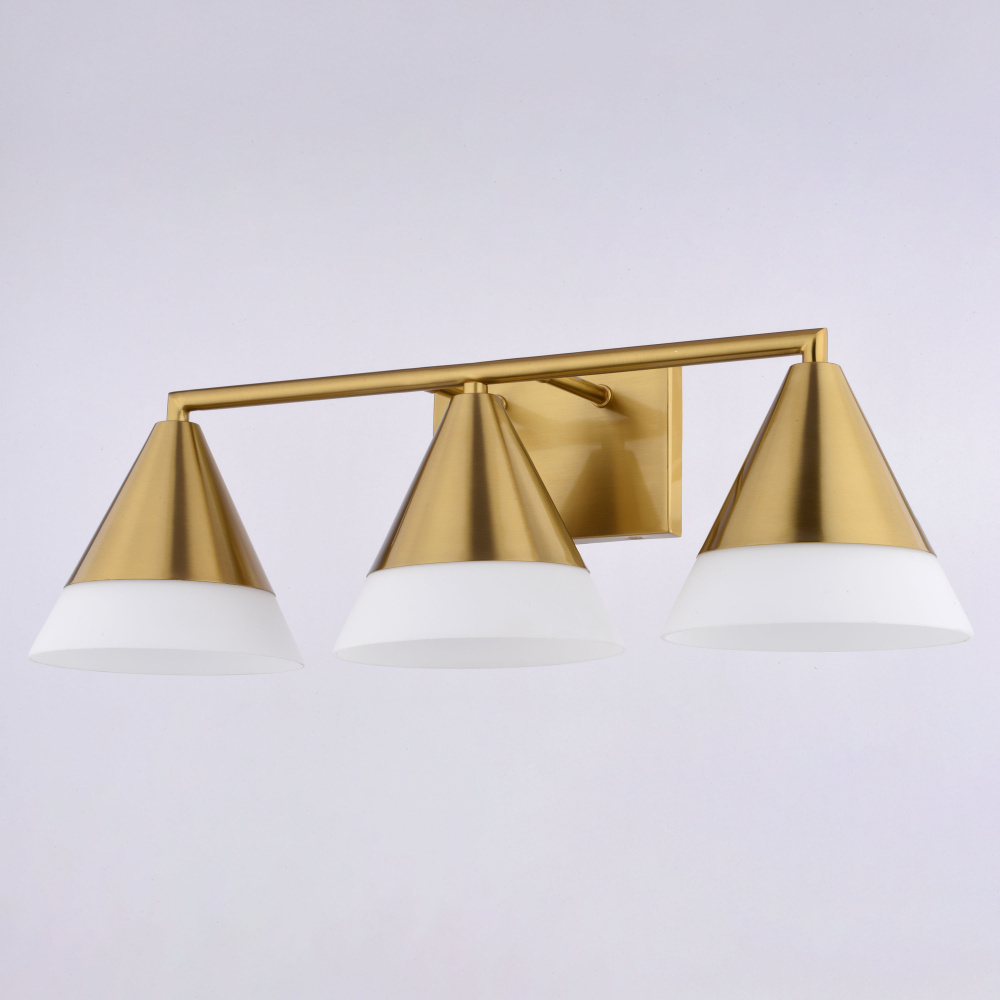 Indulge in affordable luxury with the Winthrop vanity light. This trendsetting wall fixture showcases the sought-after combination of tapered metal and glass, bringing a touch of modern sophistication to your bathroom. The harvest gold finish and clean lines complement a variety of decors, from mid-century modern to contemporary, while the three lights provide ample illumination for your daily routine. Update your bathroom with this designer-inspired piece.